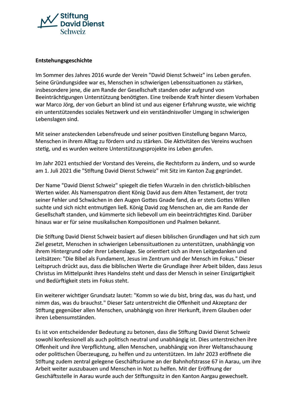 Downloads Jahresberichte 2021 | 2022 Download 2023 Download 2024 Download Factsheets Aufsuchende Sozialbegleitung und Wohnbegleitung Download Tarife Tarife Download Stiftungsurkunde und Steuerbefreiung Öffentliche Stiftungsurkunde Download Steuerbefreiung Download Entstehungsgeschichte Download Organigramm Download